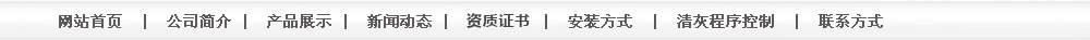 网站首页 | 公司简介 | 产品展示 | 新闻动态 | 资质荣誉 | 安装方式 | 清灰程序控制 | 联系方式 | |